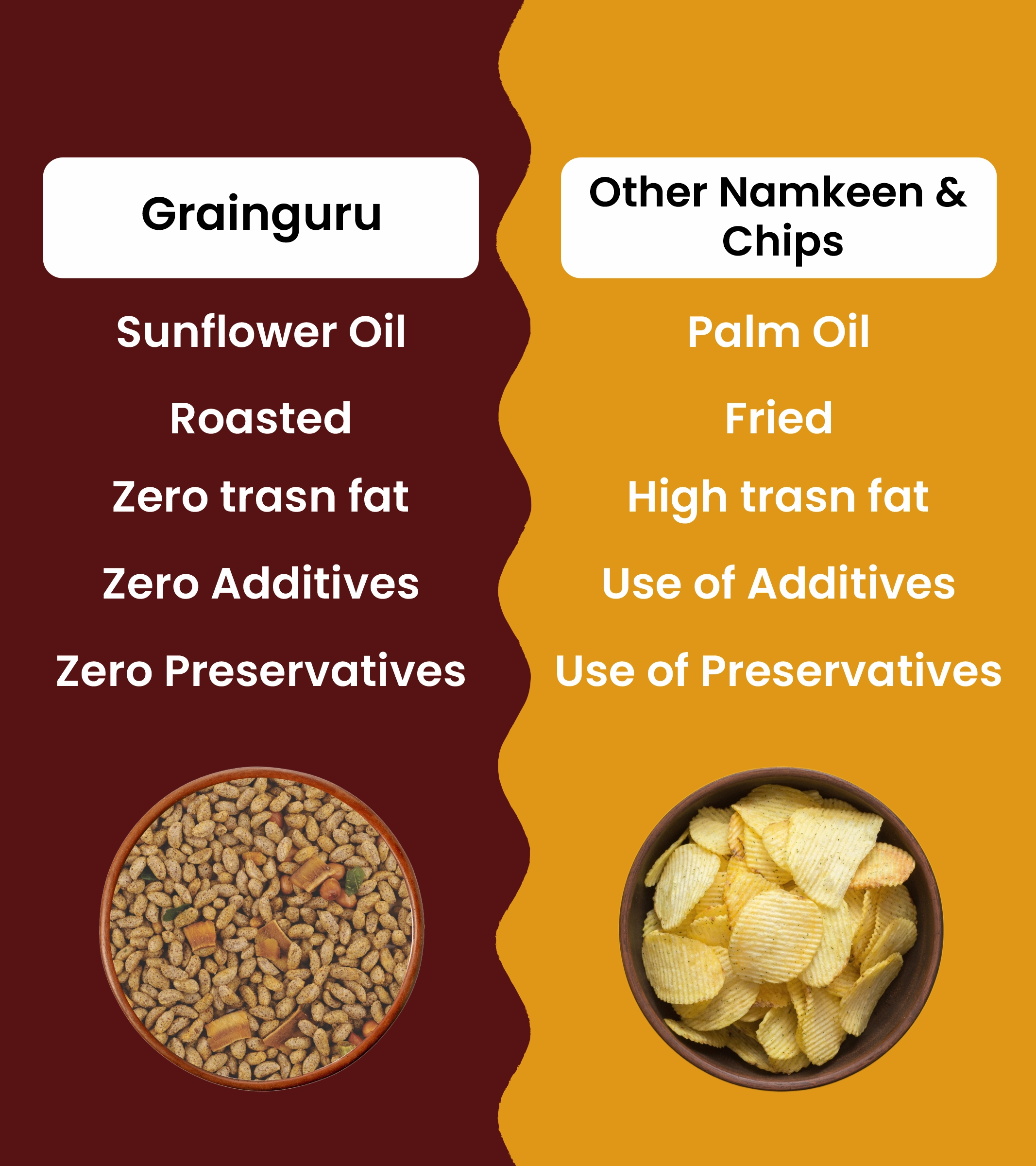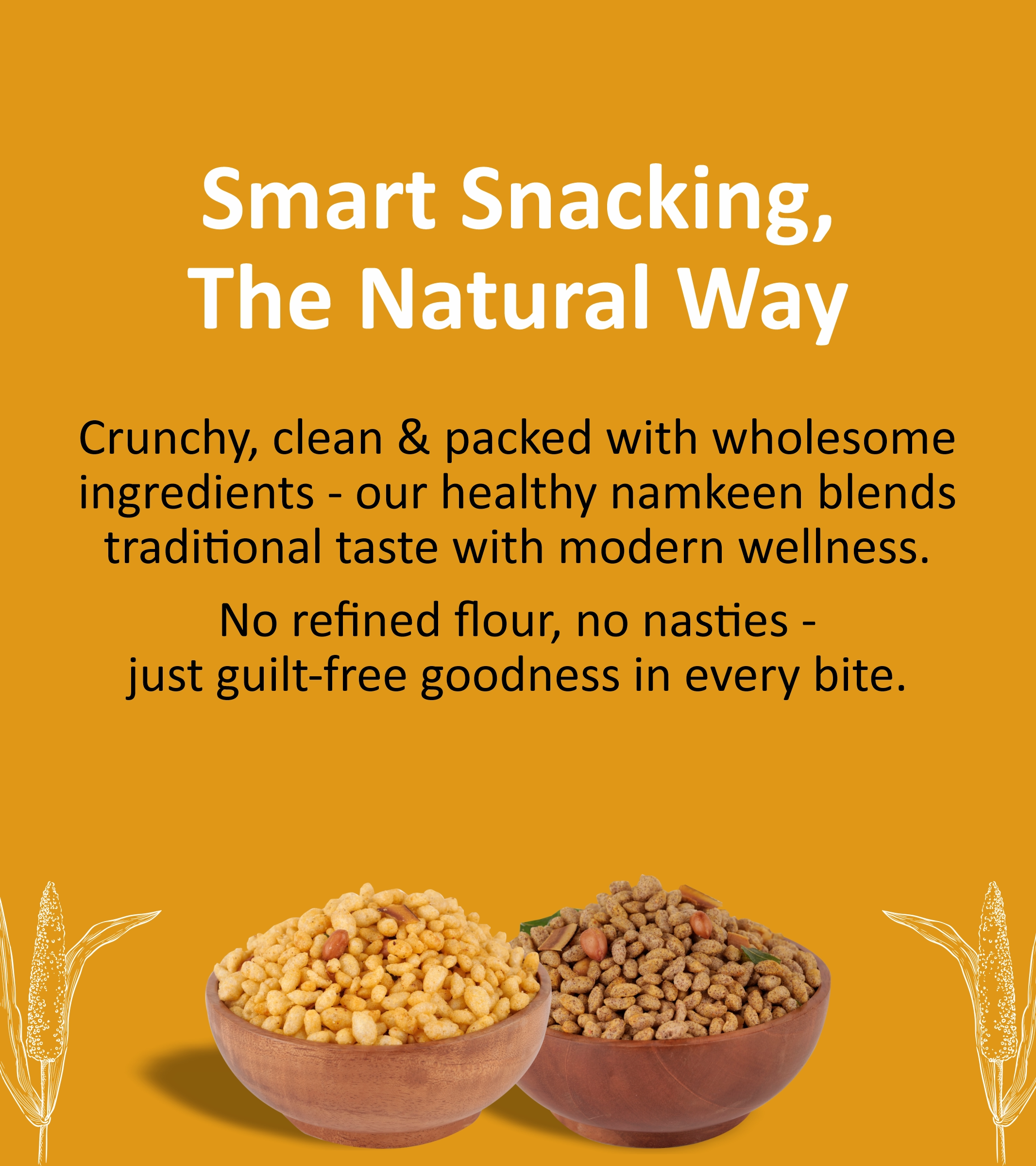 Make your tea time more exciting with this deliciously crunchy combo of Jowar and Ragi Namkeen. Packed with flavour and nutrition, it’s the perfect snack to pair with your favourite beverages. Say goodbye to cholesterol and Trans fats and enjoy a better-for-you snack made without palm oil. Eat better. Feel better. Snack smart!